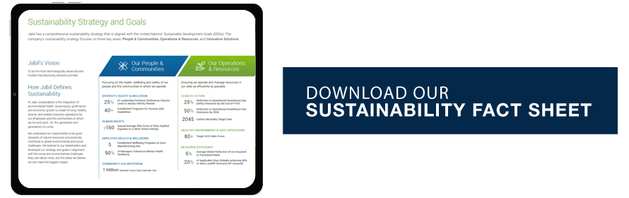 在捷普电子、可持续性集成环境健康,社会公平,治理和经济增长创造繁荣,健康,多样化和弹性经营为我们的员工和我们的社区生活和工作……这一代和子孙后代。