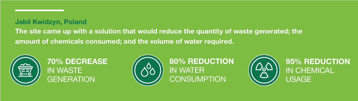 2021年1月,该基地用机械处理过程取代了这种处理过程,该过程使用离心机从工艺水中分离颗粒。由于采用了更高效的新工艺,该基地的废物产生量总体减少了70%;用水量减少80%;减少高达95%的化学品使用量;并且大大降低了运营成本。