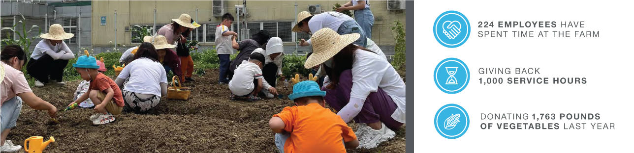 我们的员工在现场帮助领导的努力,创造有趣的活动为孩子们挑选并种植各种作物如黄瓜、辣椒、大豆和生菜。“这是为儿童创造快乐体验和回馈社区,“凌任说,铅生产技术员在现场。