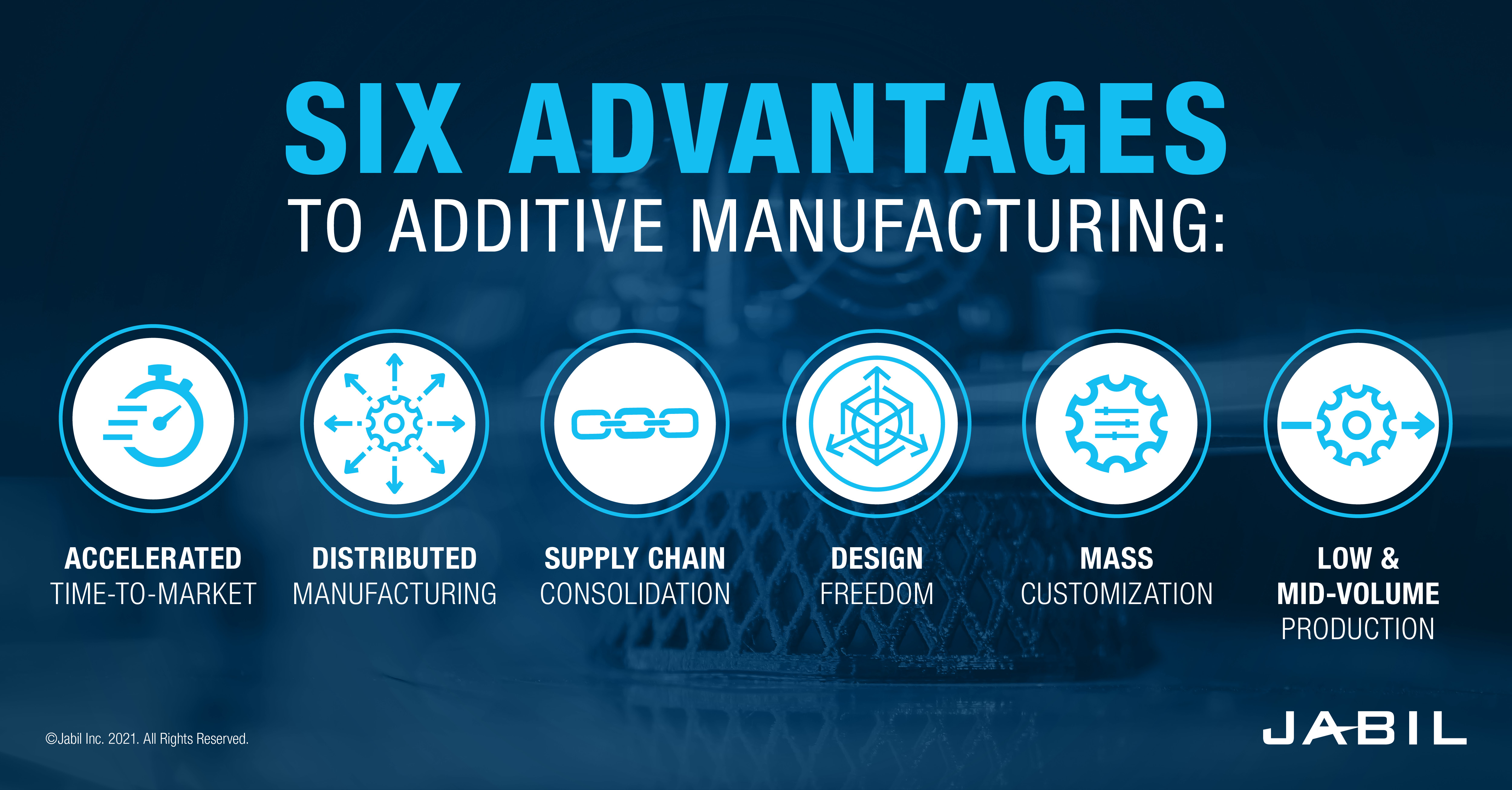 合并后的好处的更快的上市时间,创新的设计和材料,分布式制造和生产,和随需应变和现场的生产,公司可以满足客户的需求为低收入和mid-volume生产批次。