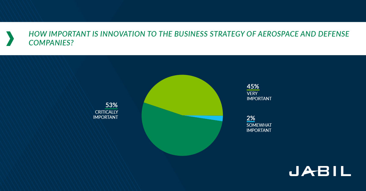 事实证明,固守旧方法不仅有害于国家安全,而且许多新的技术解决方案,如自动化和人工智能,都旨在使商业航空旅行更安全。在捷普公司最近的航空航天和国防制造业趋势调查中,超过一半的参与者表示,创新“对他们公司的持续业务战略至关重要”。下载完整调查报告。