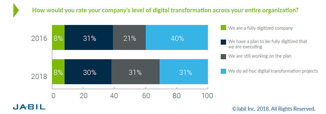 2018年1月,捷普集团赞助数字转换趋势调查,为了更好地理解经验,挑战和趋势品牌正面临着在他们的数字转换的旅程。