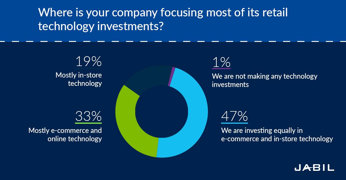 在捷普的调查中,19%的受访者表示他们主要投资于店内技术,33%的受访者表示他们专注于电子商务和在线技术。另有47%的人表示,他们在这两方面的投资是平等的。每一步都有战略优势。