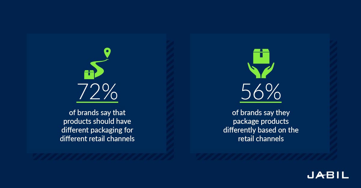 然而,在许多情况下,品牌倾向于使用相同的包装,而不管产品是在实体店还是网上销售。在捷普电子2017年电子商务包装趋势调查, 72%的受访者指出,产品应该针对不同的零售渠道有不同的包装,但只有56%的受访品牌有不同类型的包装。当包装真的很重要的时候,品牌往往专注于实体零售体验,然后把主要包装放在另一个盒子或信封里,直接运送到消费者的网上订单中。这意味着44%的受访品牌错过了满足客户需求并提供出色(差异化)客户体验的关键机会。定制包装可以提高品牌认知度,为消费者创造更积极的第一印象,鼓励积极的社交媒体反馈,并推动额外的销售。下载电子商务包装趋势调查报告。