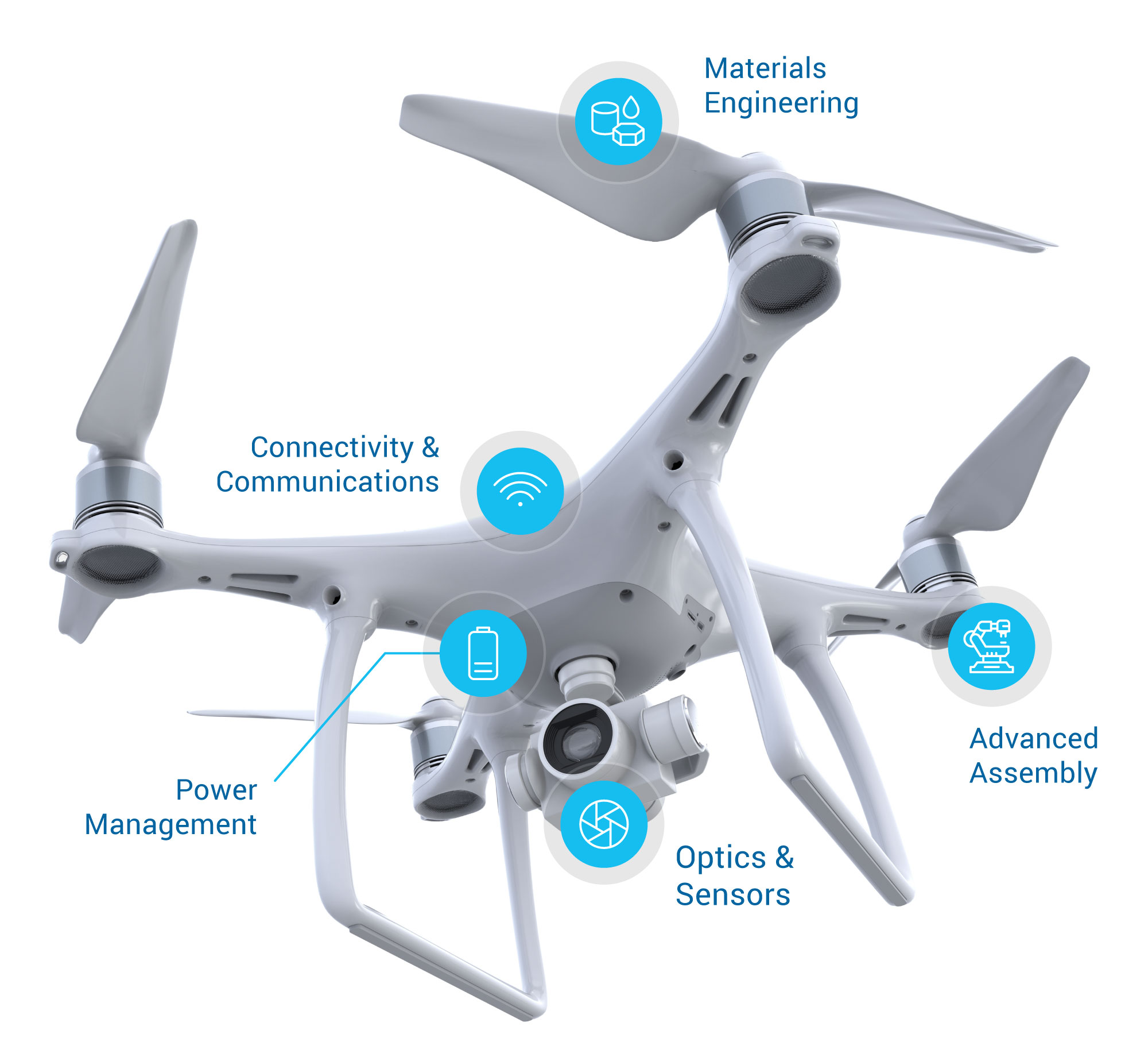 广州捷普的无人驾驶飞机制造业解决方案解决复杂的无人机系统应用的各个方面个人能力通过集成、测试和最后的包装。