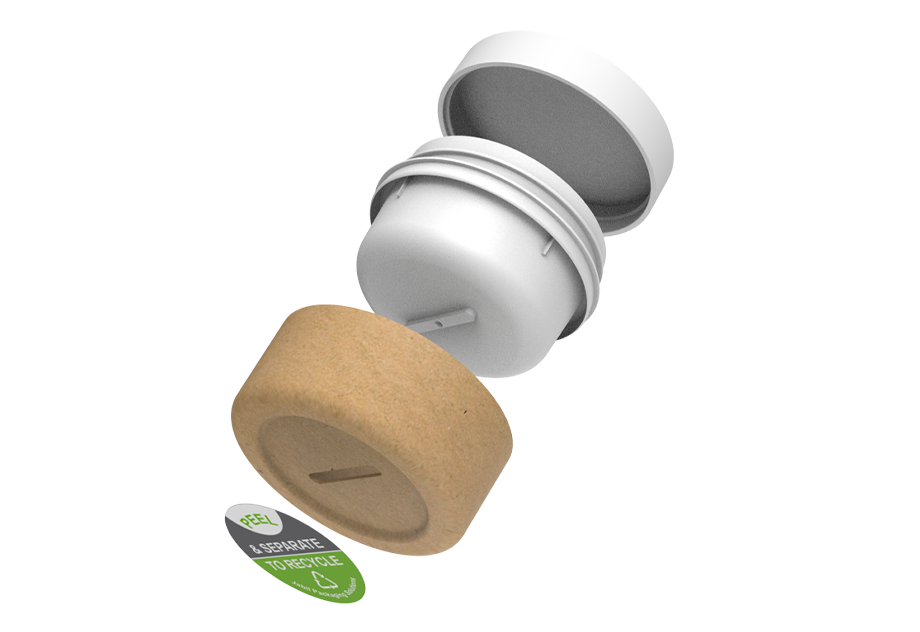 EcoJar是混合纸的包装格式,利用回收纤维外壳和一个可回收的内衬,包含和保护产品。这种两件套格式无缝连接外壳和内部衬创建一个整体式外壳设计。外壳和内衬可以很容易地分离回收的贴花和施加压力的选项卡包的基础上。