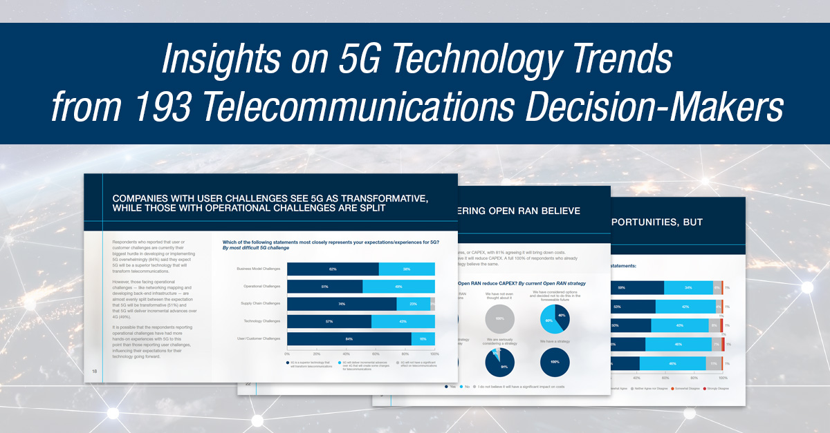 在后续的硬数据捕获的2018年报告中,计划、挑战和意见5 g技术,捷普电子与SIS国际研究领域一个新的电信公司的在线调查。下载2022 5 g技术趋势调查报告了解更多信息。