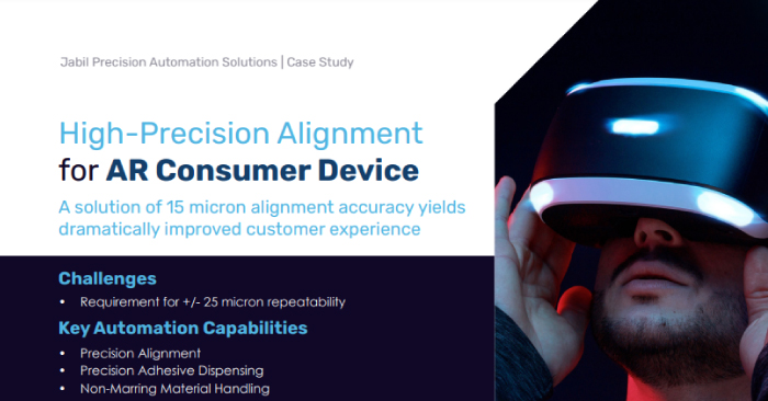 当谈到你的下一代产品,设计自动化装配(DFAA)提供真正的好处,如减少产品成本,增加适当的功能和可靠性。除了会议需要看似不可能的亚微米公差,捷普电子可以帮助您创建先进精密自动化作为端到端制造解决方案的一部分高生产力;减少周期时间;最小化停机时间;和不会过时的灵活性。
